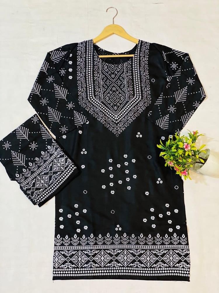The embroidered shirt features intricate patterns on the front, giving it a classy and graceful look. The matching trouser completes the outfit, creating a chic and comfortable 2-piece suit ready to wear. Its breathable fabric keeps you cool during warm weather, making it an ideal choice for summer fashion in Pakistan.
