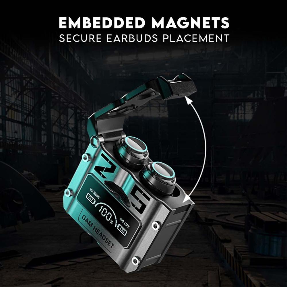 The M25 TWS features Hi-Fi stereo sound, noise-cancellation technology, and an LED digital battery display that keeps you updated on power levels. Its ergonomic design fits perfectly in your ears, ensuring long-hour comfort without any pain.